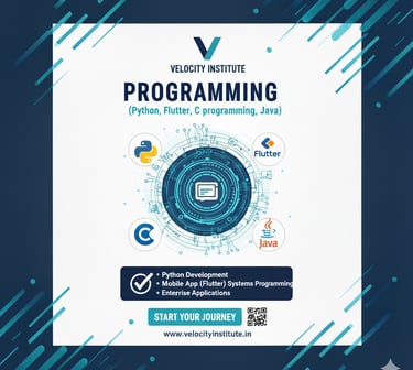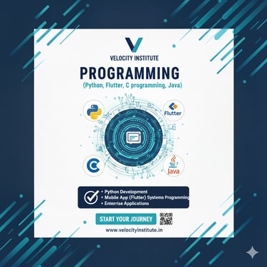 Velocity Institute is dedicated to equipping students with the skills and knowledge necessary to thrive in today's competitive job market. Kerala's first AI embedded classes. Our offerings include Tally, Python, Java, DCA, PGDCA, CDTP, DOA, Computer Basics, Computer programming, AI - Powered Spoken English, Abacus, and our signature Work Readiness Program (WRP) at Aluva and Perumbavoor.